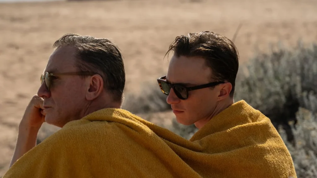 Do outro lado dessa equação tóxica está Drew Starkey no papel de Eugene Allerton. Embora o holofote pertença inegavelmente a Craig, Starkey cumpre bem o seu papel ao encarnar o objeto de desejo inalcançável. Sua atuação é marcada por uma ambiguidade fria, uma indiferença que alimenta a obsessão de Lee. A dinâmica entre os dois não é de um romance convencional, mas de uma negociação constante de poder e submissão. O filme consegue passar bem para o espectador a solidão esmagadora de Lee, que vê em Eugene não uma pessoa, mas uma última chance de sentir algo real antes que o abismo se feche.