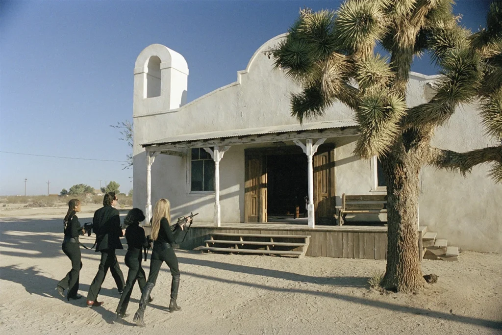Desde a primeira sequência, Tarantino combina coreografias de luta estilizadas, cortes rápidos e explosões de cor, transformando violência em identidade estética. A escolha por efeitos práticos, sangue em profusão e passagens em preto-e-branco ressalta o caráter performático do enredo.