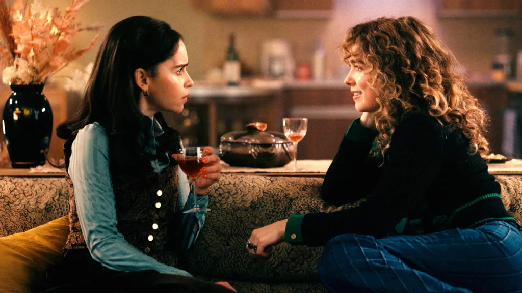 Interpretando Bea, Emilia Clarke assume o protagonismo de “Ponies” com naturalidade. A atriz, acostumada a papéis de forte carga emocional, exibe aqui um equilíbrio entre vulnerabilidade e astúcia, recurso essencial para uma narrativa em que ninguém está completamente seguro. Sua performance torna crível a motivação de uma viúva que descobre, aos poucos, falhas estruturais na agência em que confiava.