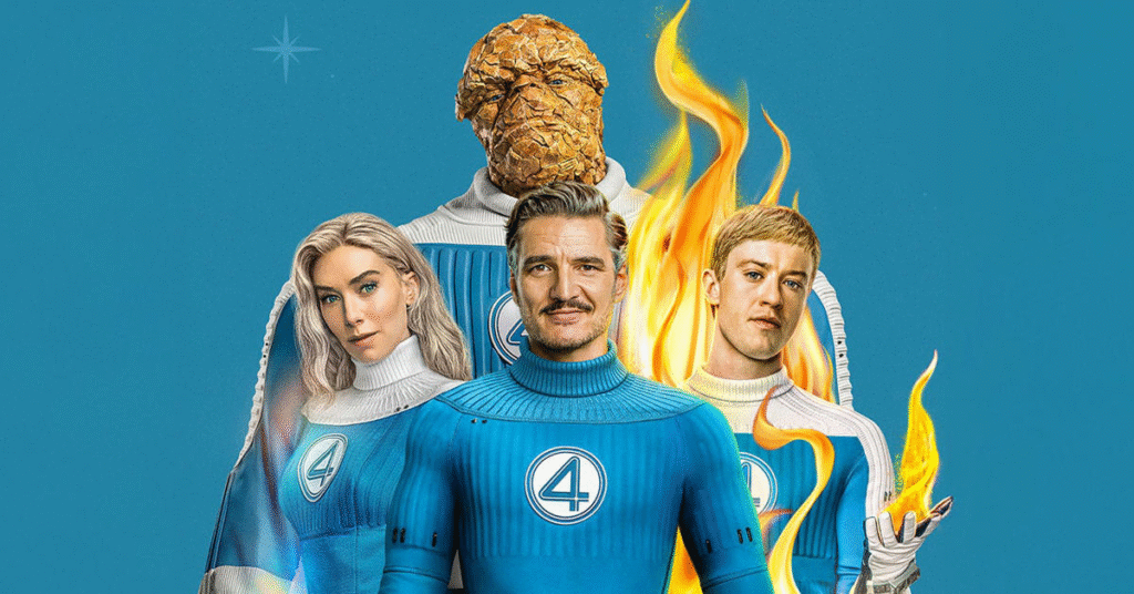 Pedro Pascal interpreta Reed Richards (Sr. Fantástico), Vanessa Kirby vive Sue Storm (Mulher Invisível), Joseph Quinn assume Johnny Storm (Tocha Humana) e Ebon Moss-Bachrach completa a equipe como Ben Grimm (Coisa).