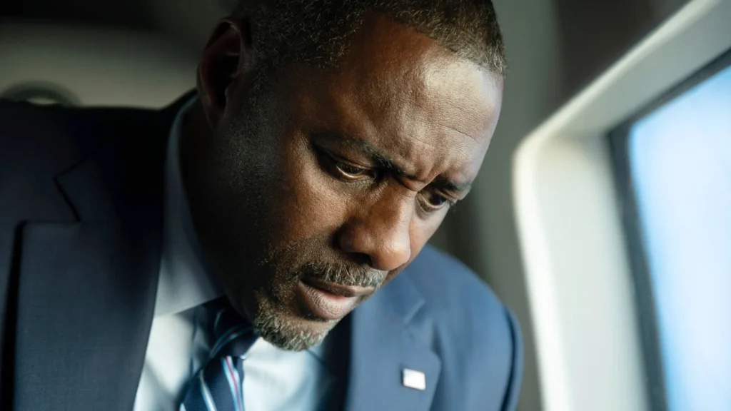 O chefe de Estado surge apenas na parte final, depois de participar das reuniões virtuais com a câmera desligada. Quando finalmente aparece, Idris Elba recebe diálogos cruciais sobre a responsabilidade política em situações extremas. Apesar disso, a construção propositalmente genérica do “POTUS” não oferece muitos detalhes de background, o que dilui o carisma natural do ator e reduz o impacto de sua entrega.