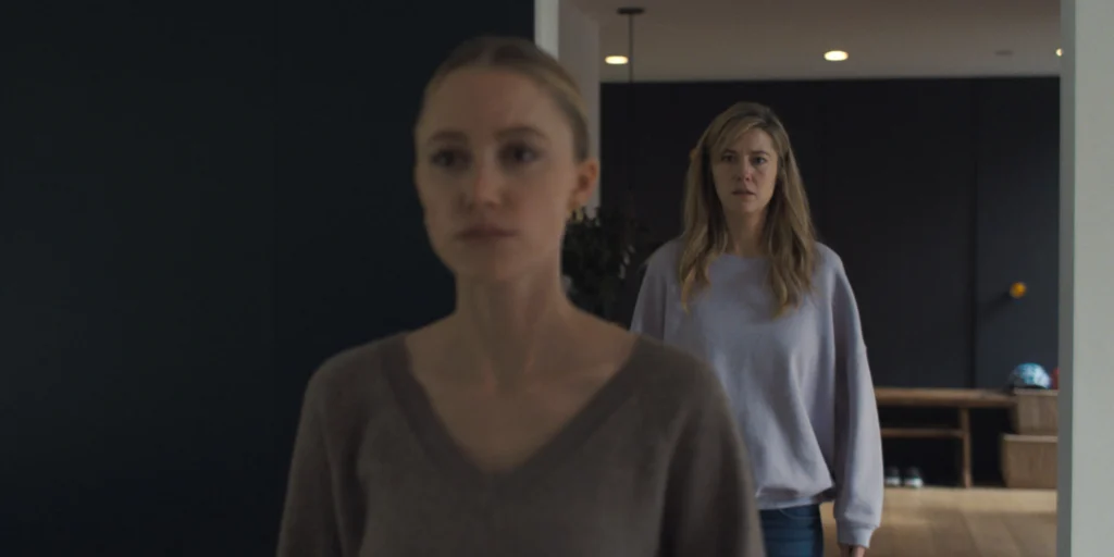 Michelle Garza Cervera aposta em um ritmo de slow burn, construindo tensão por meio de iluminação opressiva e closes que destacam olhares suspeitos. Essa estratégia funciona nos primeiros atos, quando o espectador ainda questiona se os receios de Caitlyn são reais ou fruto de ansiedade.
